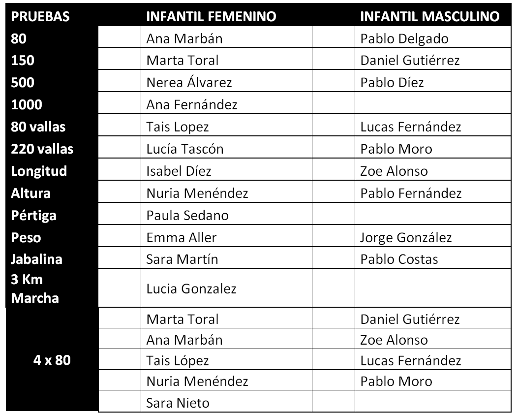En caso de que algún atleta de los seleccionados no pueda asistir, comunicarlo a la mayor brevedad a los entrenadores / monitores; o a través del correo electrónico o teléfono del club. (También 669793796 David Lazo).