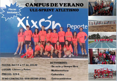 El club Sprint Atletismo León organiza un campus de verano con el objetivo de mejorar y desarrollar aspectos técnicos de las diferentes disciplinas atléticas y realicen diferentes actividades de ocio y tiempo libre en un entorno cercano a la playa para favorecer la convivencia y mejorar las relaciones interpersonales de nuestros atletas.