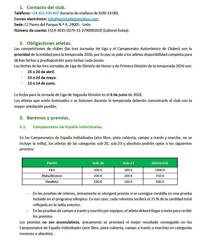 REGLAMENTO Y PREMIOS Temporada 2026